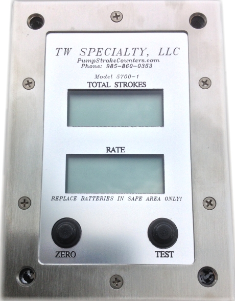 The 5700 series counters are controlled by microprocessors. Each unit has a test button and will test the unit @ 60 SPM. The zero buttons are used to zero total stroke count for each pump. MAX RPM 500.
