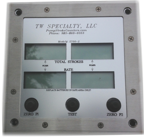 The 5700 series counters are controlled by microprocessors. Each unit has a test button and will test the unit @ 60 SPM. The zero buttons are used to zero total stroke count for each pump. MAX RPM 500.